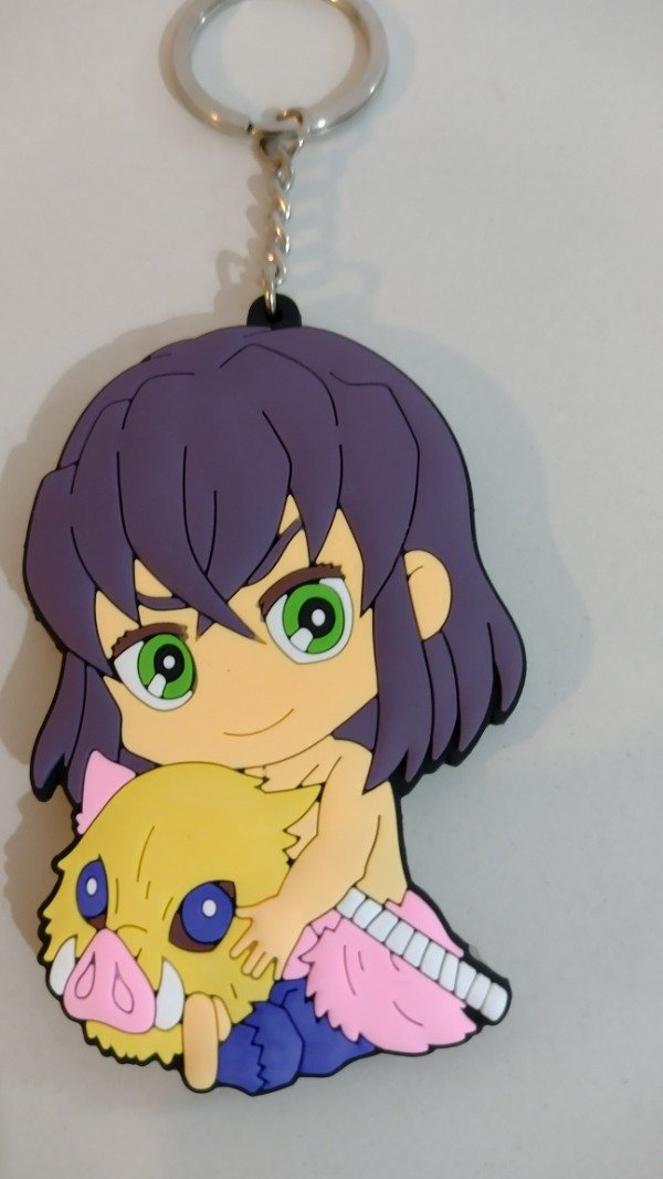 Llavero Inosuke mascara en mano Demon Slayer Goma plano