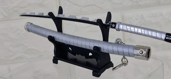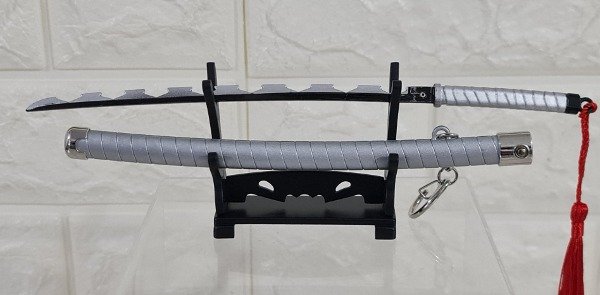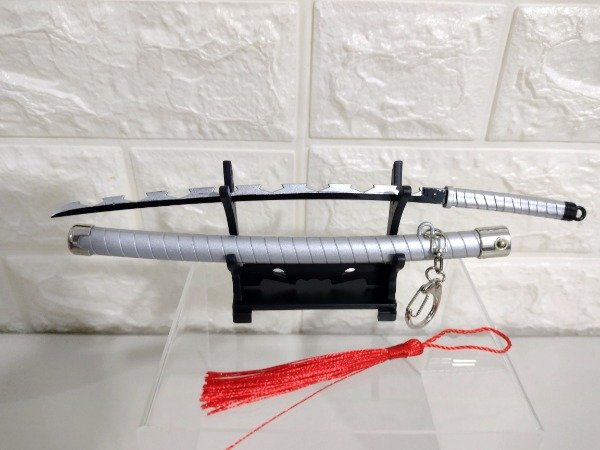 Llavero Katana Inosuke metal 23 cm con muelle automático y base de apoyo