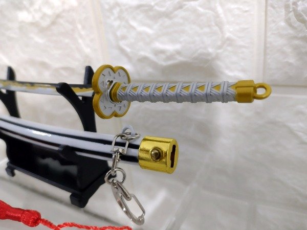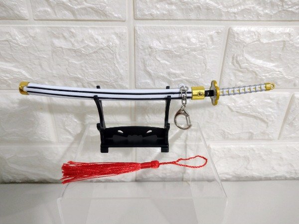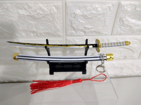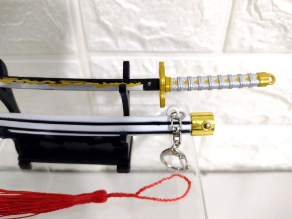 Llavero Katana Zenitsu metal 23 cm con muelle automático y base de apoyo