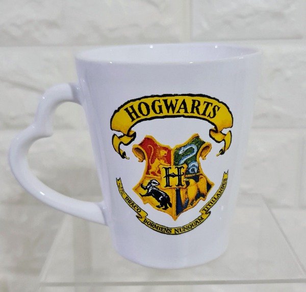 Taza cónica Harry Potter blanca diseño Hogwarts asa corazón - 250cc
