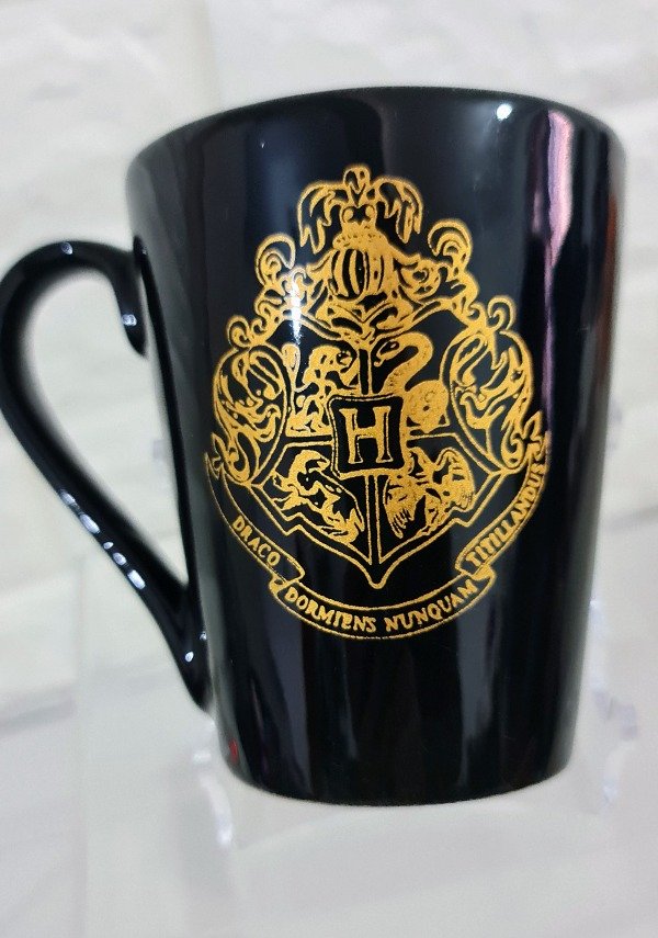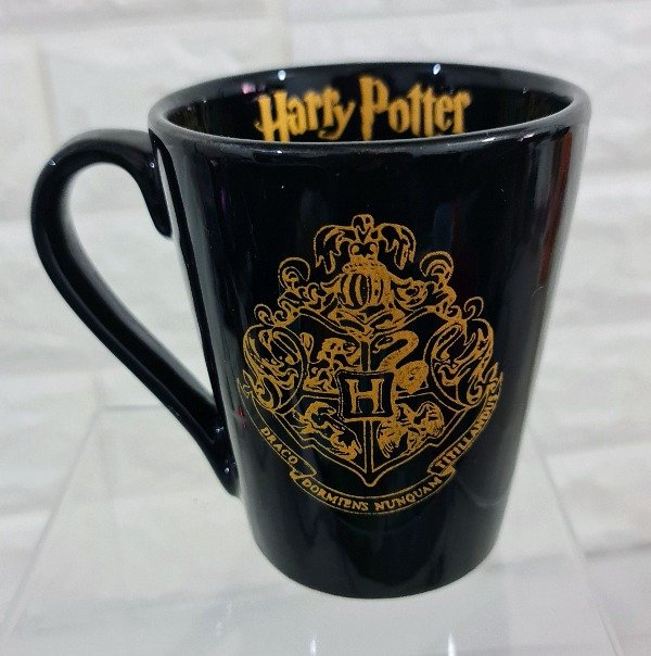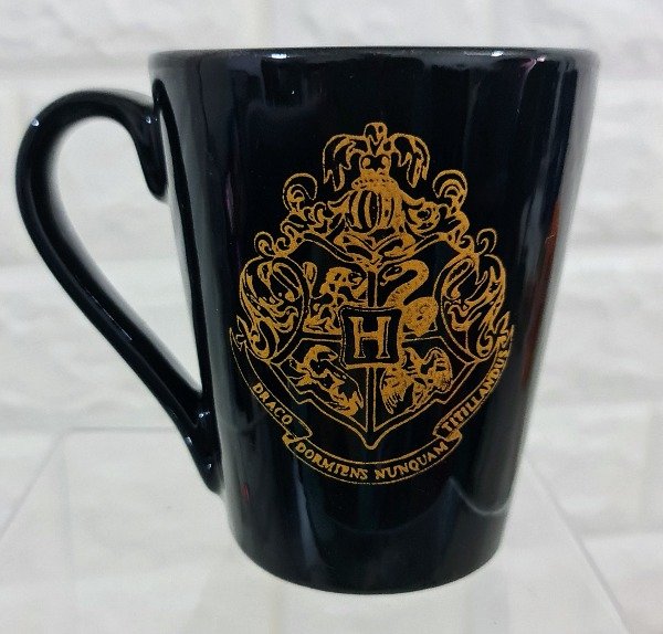 Taza cónica Harry Potter negro y dorado Hogwarts escudo grande 250cc