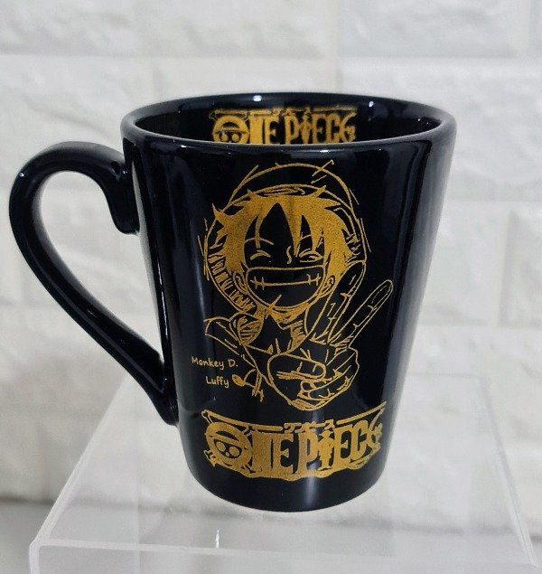 Taza cónica negro con dorado Luffy One Piece 250cc diseño 01