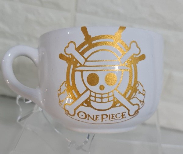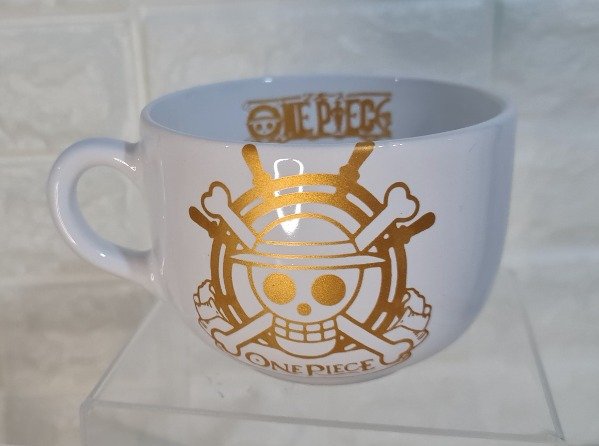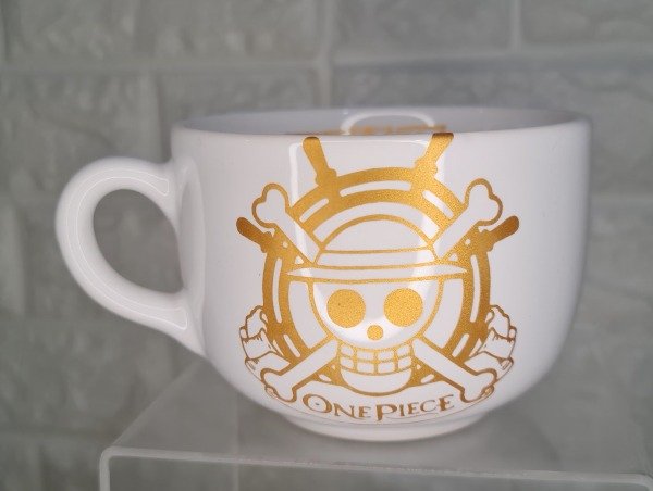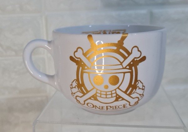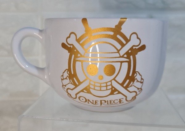 Tazón blanco con dorado calavera One Piece 500 cc